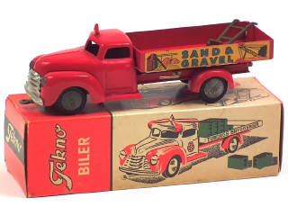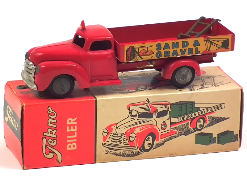 TEKNO (DANEMARK) 748 DODGE Benne basculante latérale 'SAND & GRAVEL' rouge & jaune