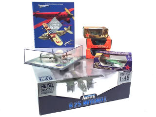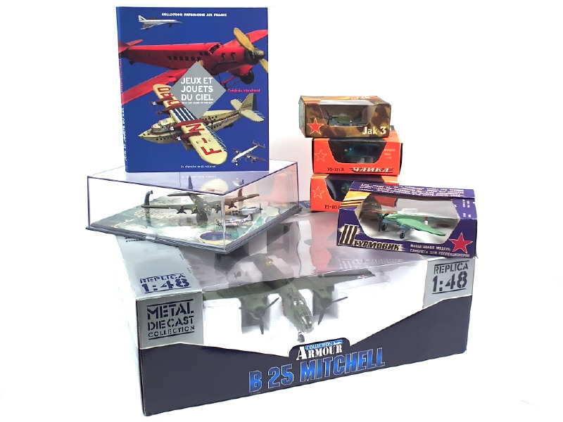 différentes échelles - comprend notamment : B25 MITCHELL & JAK-3 - on y retrouve notamment la marque ARMOUR - on y joint un livre 'JEUX & JOUETS DU CIEL' - petits accrocs sur quelques boîtes