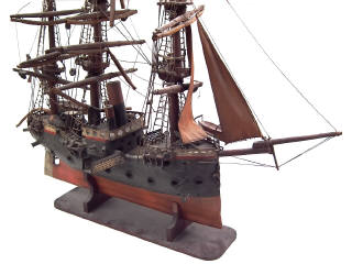 DIVERS SAINT LOUIS Navire de guerre français en bois peint vert, brique & marron
