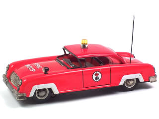longueur 33 cm - moteur à piles, système électrique du gyrophare & sonnerie (non testés) - parties nickelées plus ou moins ternies - petit défaut d'origine sur le capot-moteur - manque vitre de pare-brise - antenne non d'origine