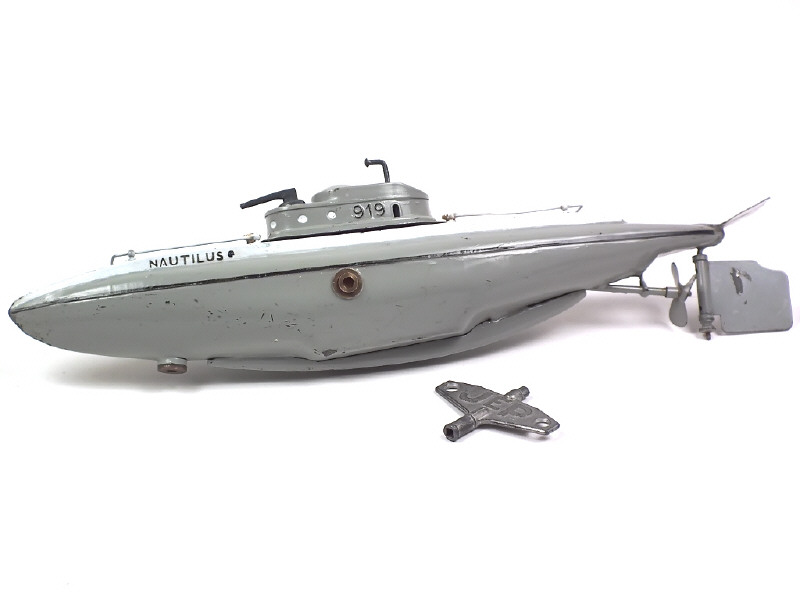 ce modèle de 42 cm est inspiré du célèbre NAUTILUS américain - sa particularité est de pouvoir plonger & naviguer sous le niveau de l'eau - éclats majeurs par endroits
