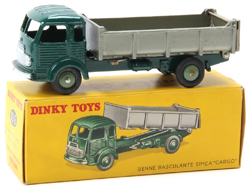 DINKY TOYS (FRANCE) 33B SIMCA CARGO Benne basculante vert foncé, benne gris métal doré (intérieur strié), jantes vert pâle