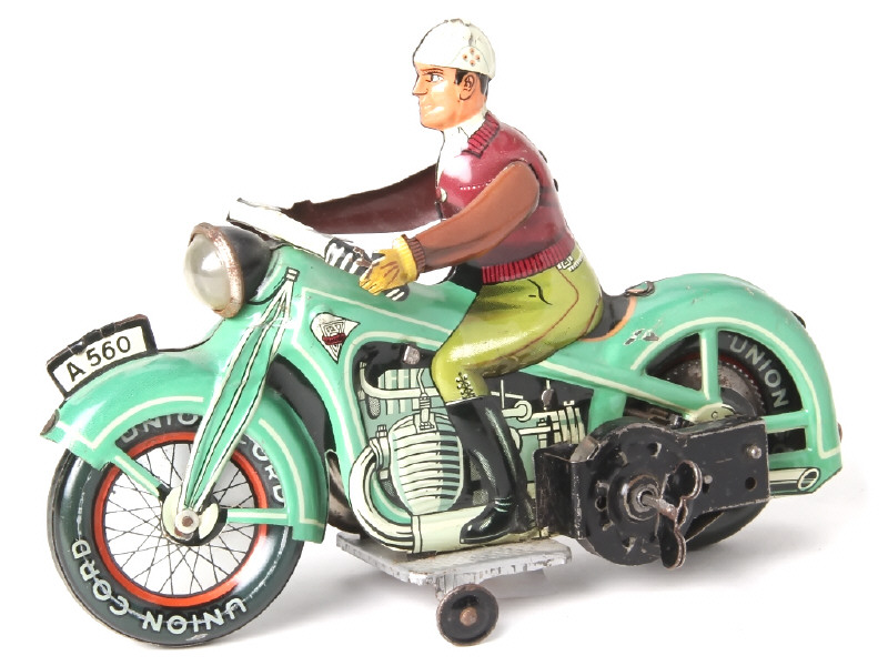 ARNOLD (ALLEMAGNE) A 560 Moto avec pilote en tôle lithographiée vert clair