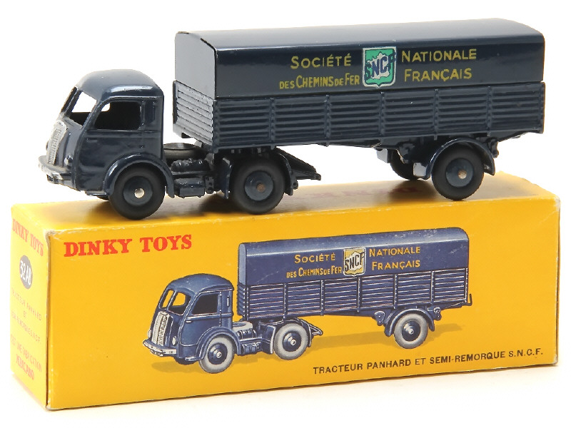 DINKY TOYS (FRANCE) 32AB PANHARD Semi-remorque 'S.N.C.F' (version avec intérieur de toit quadrillé) bleu foncé (fond de l'écusson uni)