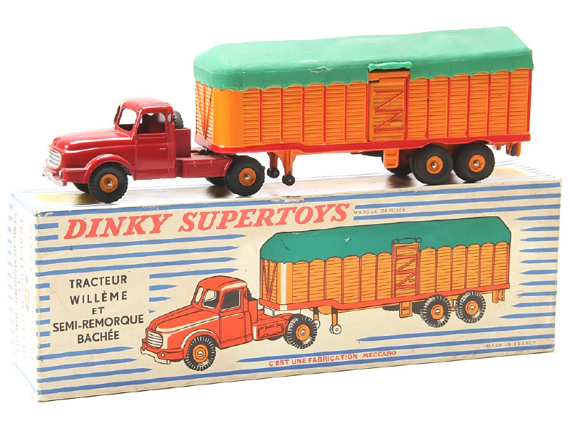 DINKY TOYS (FRANCE) 896 WILLEME Semi-remorque bâché (version avec jantes concaves) rouge & orange, bâche verte