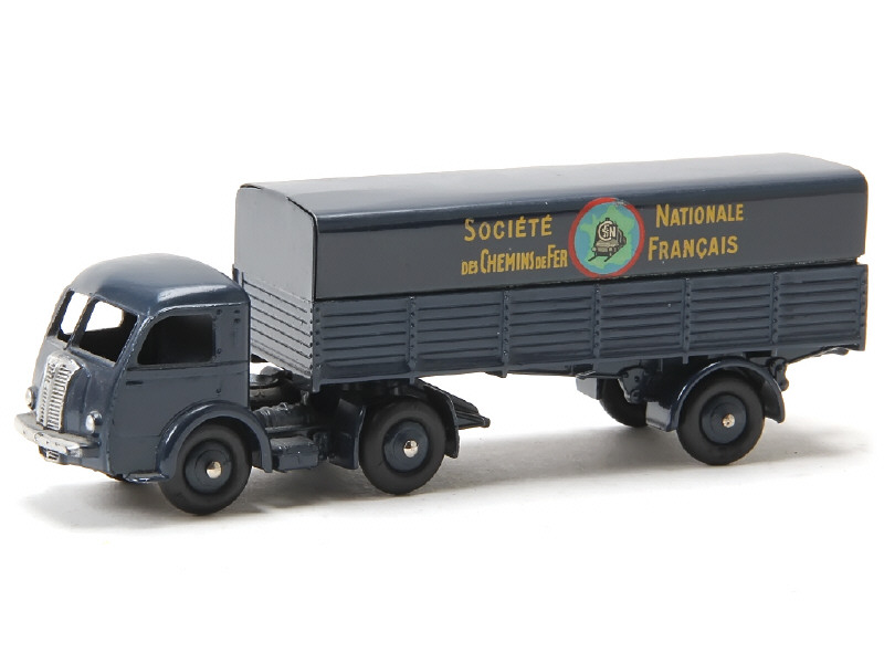 DINKY TOYS (FRANCE) 32AB PANHARD Semi-remorque 'S.N.C.F' (version avec intérieur de toit quadrillé) bleu foncé
