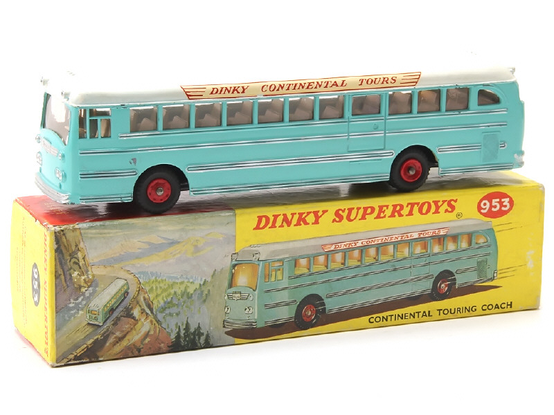 DINKY TOYS (GB) 953 WAYNE Autocar 'DINKY CONTINENTAL TOURS' turquoise & blanc