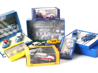 comprend les modèles : Citroën DS Break 'ASPRO' et 'RTL', coffret 'GORDINI' avec R17 TS Porto et R12 break assistance, un coffret 'GORDINI' avec R8 et R12, un coffret 'GORDINI' avec 3 Renault 8 et 2 petites boites de cyclistes