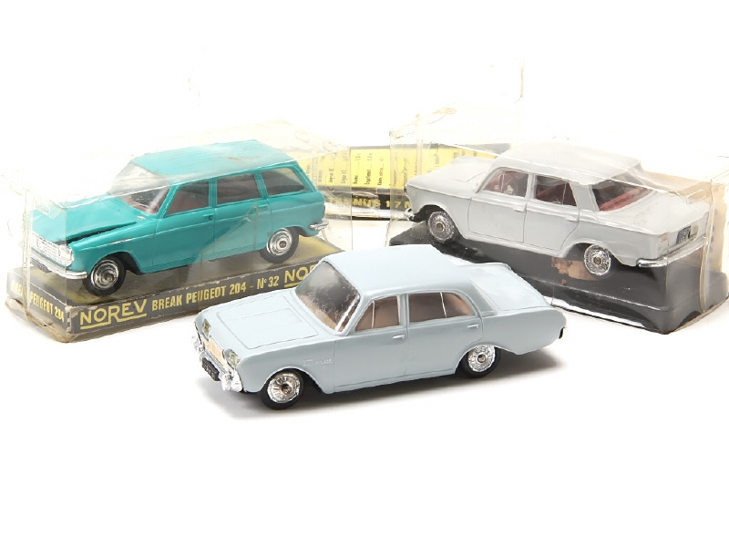 comprend les modèles : FIAT 1500 (jantes légèrement fondues avec bon d'inscription au club), FORD TAUNUS 17M (jantes légèrement fondues) & PEUGEOT 204 break (déformation du capot-moteur)