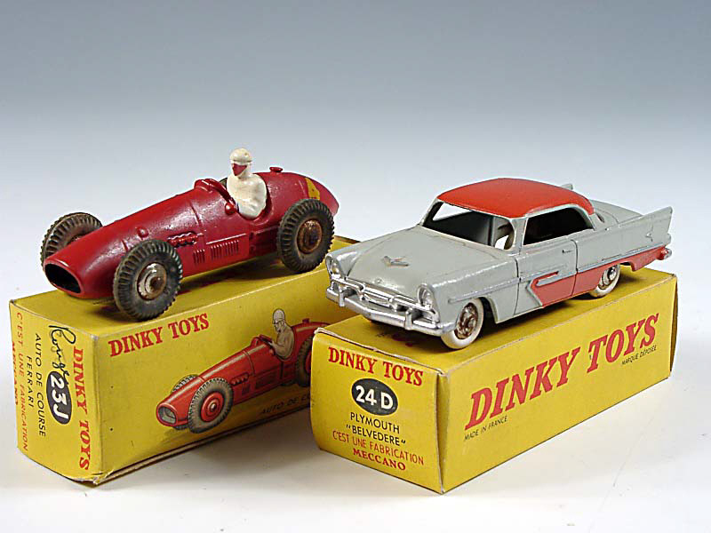 DINKY TOYS (FRANCE) 24D PLYMOUTH BELVEDERE (version avec jantes convexes) gris & tomate