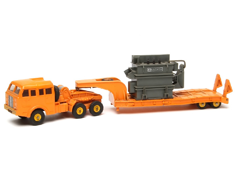 DINKY TOYS (FRANCE) 898 BERLIET Semi-remorque plateau porte-transformateur (version avec jantes de remorque convexes) orange