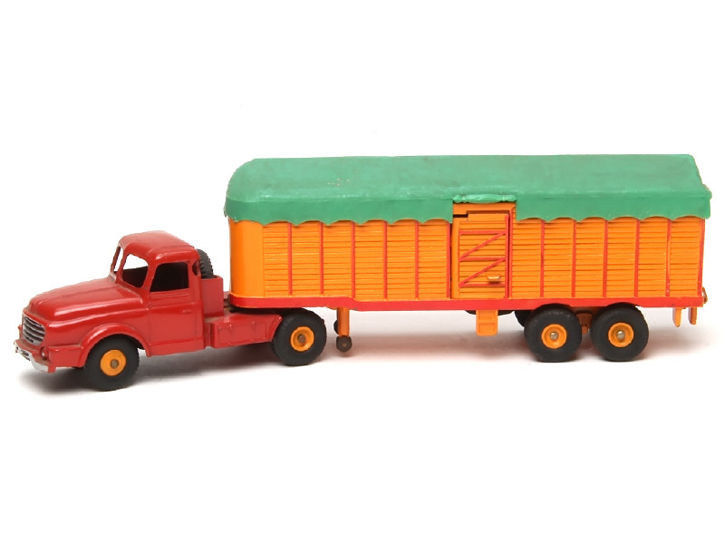 DINKY TOYS (FRANCE) 36B WILLEME Semi-remorque bâché (version avec jantes convexes) rouge & orange, bâche verte