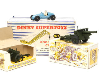 états de 'A' à 'C' - comprend : GORDINI 2.5L (sans boîte), canon de 18 pouces & 25 pouces (sans obus) - on y joint une boîte vide (référence 973 en état 'c') de la marque DINKY TOYS GB