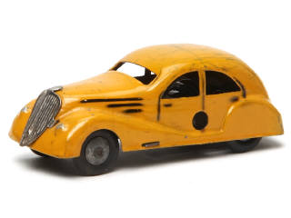 longueur 9,5 cm - moteur à clef (fonctionne - avec traces d'oxydation) - importantes rayures sur l'ensemble de la carrosserie - importants manques de peinture sur le plancher