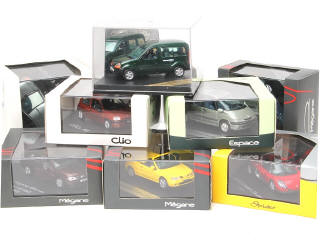 comprend : MEGANE (3 exemplaires différents), KANGOO (2 exemplaires différents), Sport SPIDER, CLIO & ESPACE