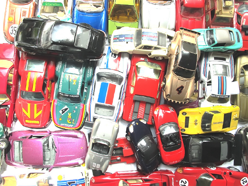Bon état général - on y retrouve les marques : Hotwheels, Bburago, Polistil, Politoys, Scalextric etc. - on y joint une Porsche avec pierre à feu et une Mercedes tout en métal FAL - possibilité de petits manques et accidents