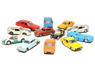 états de 'B' à 'C' - miniatures reproduisant les modèles : FIAT, MATRA (2 exemplaires différents), PORSCHE (4 exemplaires différents dont un en état 'F'), MERCEDES, CITROEN, LANCIA & RENAULT - avec parties cassées & manquantes
