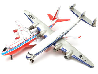 envergure 50 cm - moteur à friction (fonctionne) - en action, l'avion avance & les hélices tournent - on y joint un BOEING 747 de la marque en état 'C' (moteur à friction fontionne poussivement) - avec manques & parties cassées