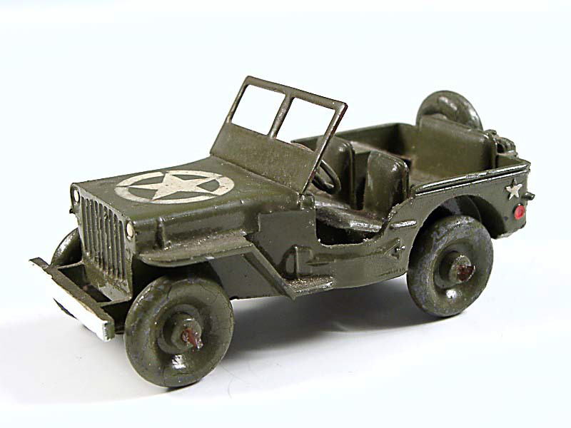 modèle produit en 1946 - première de la série des JEEP 24M - les 5 jantes peintes sont en état 'D' avec traces de métal fatigue - axes de roues oxydés - TRES BEL ASPECT POUR UN MODELE DE CETTE EPOQUE !