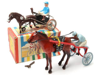 comprend un sulky de marque RICO avec boite d'origine état 'e', (fonctionne, avec sa clé) & un sulky de fabrication italienne (moteur poussif, sans clé) - manques et accidents possibles