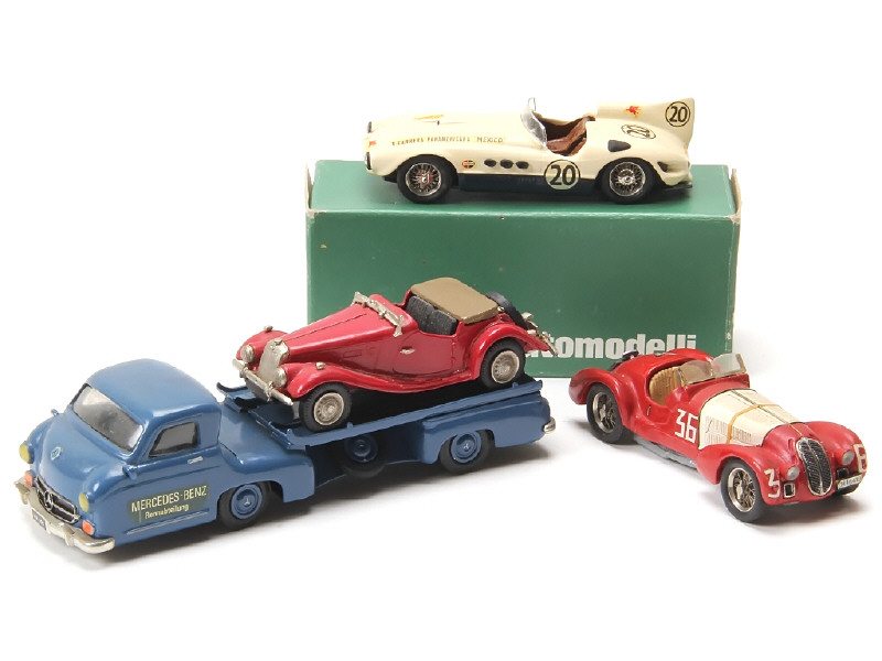 miniatures reproduisant les modèles : MERCEDES, ALFA ROMEO, MG & FERRARI (en boîte état 'c') - on y retrouve notamment les marques : FDS, WESTERN MODELS & STYLING MODELS - quelques manques