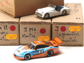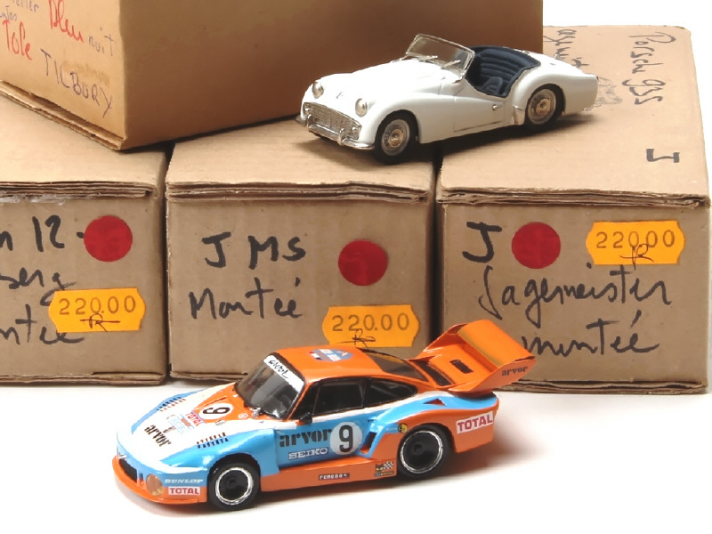 on y retrouve les publicités : JMS, JAGERNEISTER, ARVOR & WEISBERG - on y joint une TRIUMPH TR3A de la marque TILBURY - annotations sur les boîtes