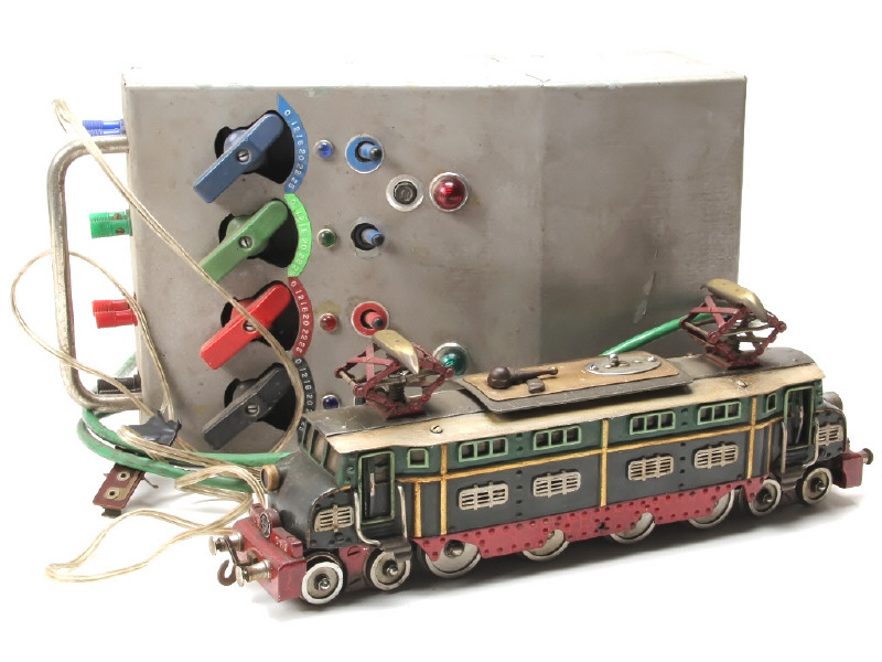 réalisation artisanale détaillée datant de la 2ème guerre mondiale - avec moteur & système électrique (non testés) - carrosserie encrassée - on y joint une station d'alimentation 12-20V & 9 rails courbes - PIECE UNIQUE AYANT DEMANDEE PLUS DE 1000 HEURES DE TRAVAIL !