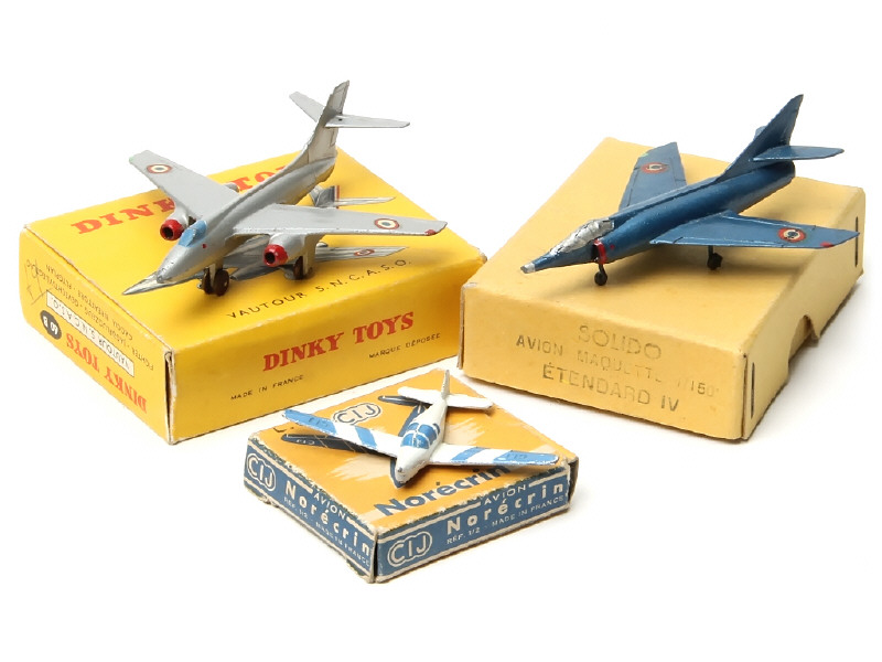 comprend : ETANDARD IV SOLIDO (état 'C.b' avec traces de métal fatigue), VAUTOUR DINKY TOYS FRANCE (état 'B.b' avec détails de peinture ajoutés) & NORECRIN CIJ (état 'B.c')