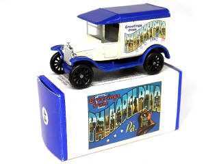 MATCHBOX (GB) MB44 FORD T Van 'GREETINGS FROM PHILADELPHIA 1992' bleu & crème