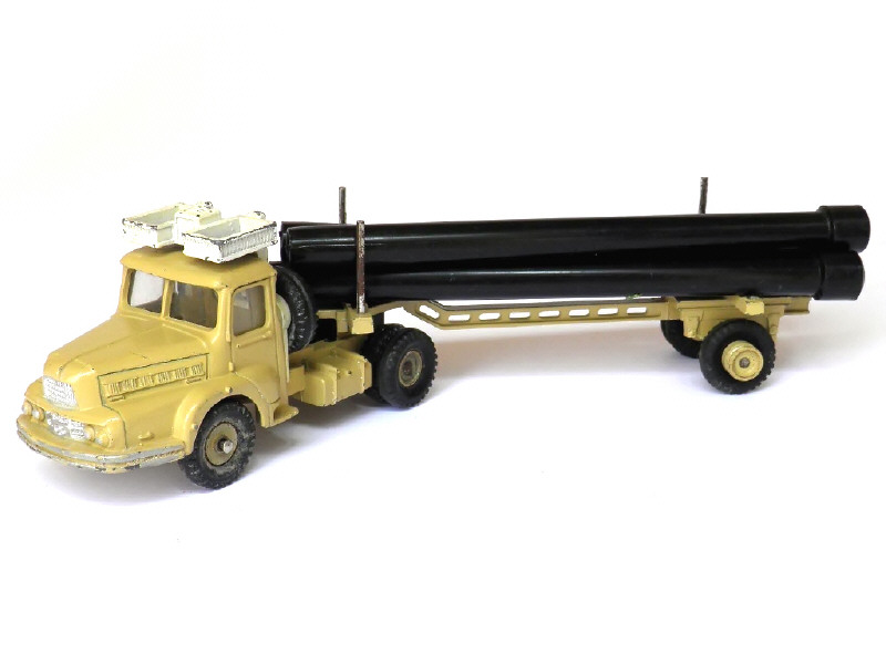 DINKY TOYS (FRANCE) 893 UNIC Saharien transport de pipe-lines (version avec jantes concaves & remorque ajourée) sable & blanc
