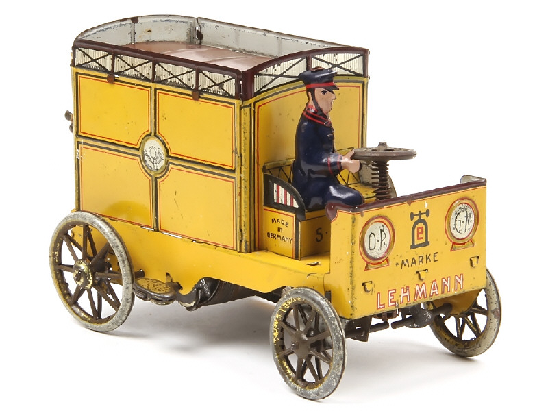 LEHMANN (ALLEMAGNE) 575 Camion-fourgon postal en tôle lithographiée jaune & marron