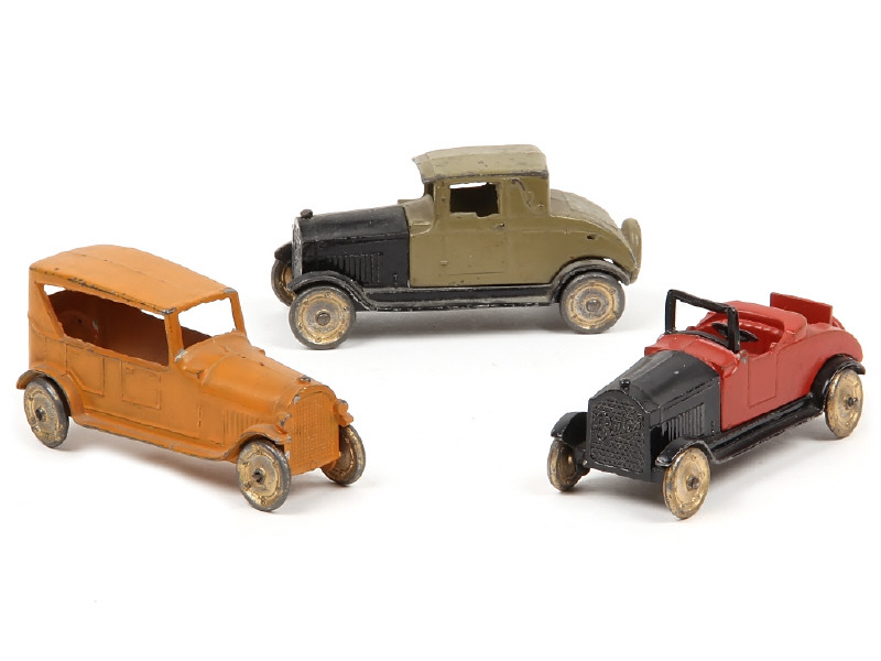 réalisation en plomb - états 'C' & 'D' - comprend : un roadster (entourage de pare-brise cassé) & un coupé - on y joint un cabriolet capoté