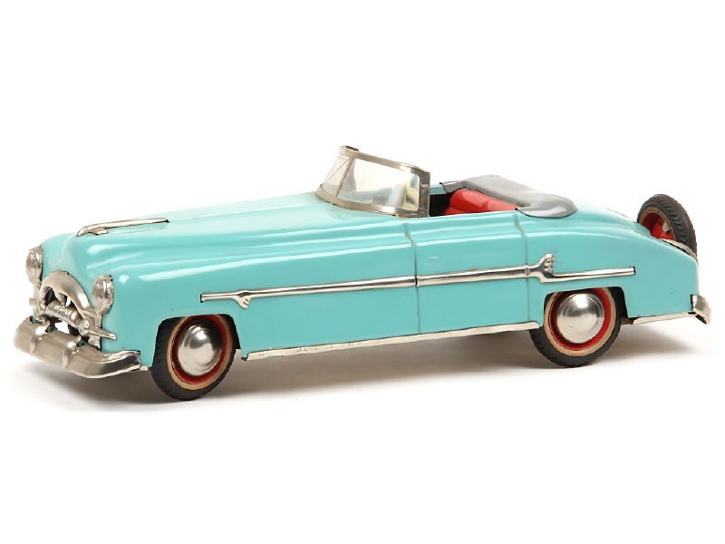 longueur : 26 cm - avec moteur à clef (fonctionne), direction, manette de frein & levier de vitesses au tableau de bord - vitre de pare-brise fêlée