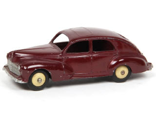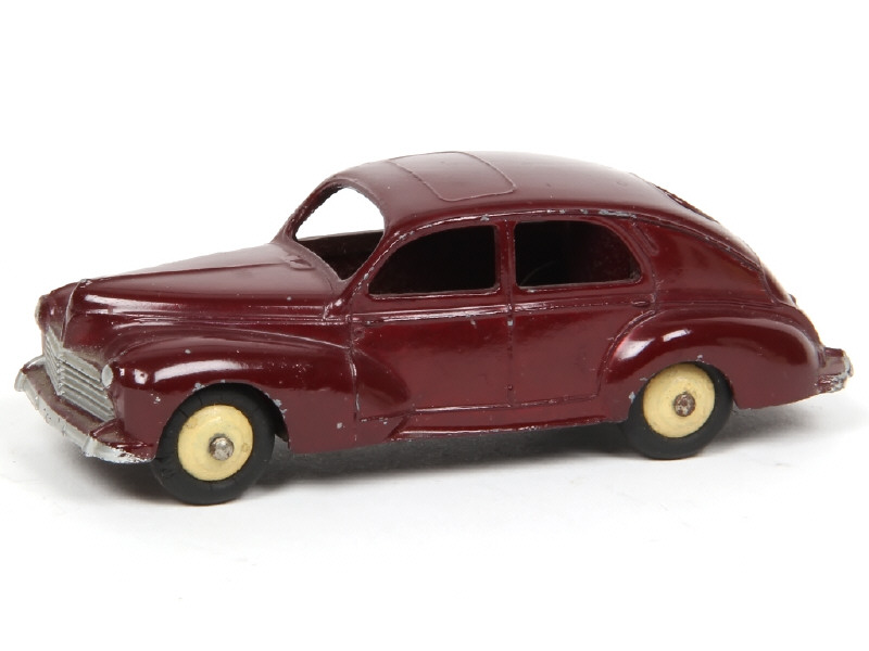 DINKY TOYS (FRANCE) 24R PEUGEOT 203 Petite lunette arrière (version avec intérieur de toit lisse & feu de stop) grenat, jantes crème