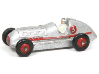 DINKY TOYS (FRANCE) 23C MERCEDES de course (version avec jantes rouges à pneus) argent & rouge, plancher argent