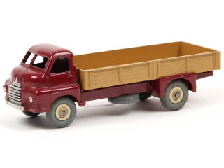 DINKY TOYS (GB) 408 BIG BEDFORD Plateau à ridelles bordeaux & ocre, jantes crème