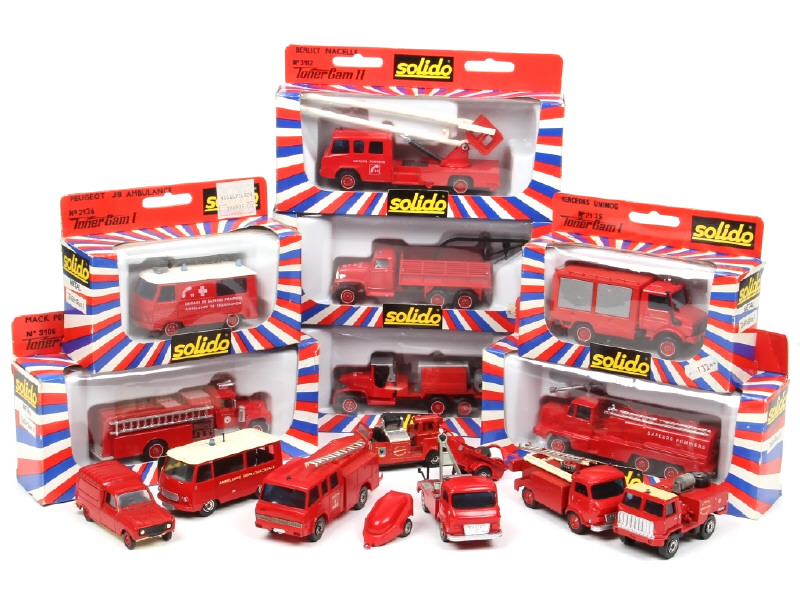 SOLIDO (FRANCE) Ensemble de 14 véhicules de pompiers & 2 remorques