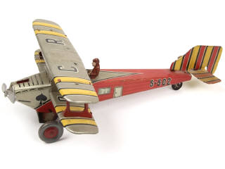 C.R. (FRANCE) 502 Avion biplan en tôle lithographiée 'AS DE PIQUE' rouge, gris métal & jaune