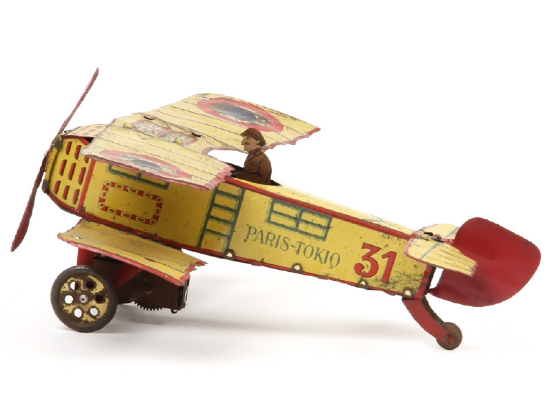 J.M.L. JOUETS MAGNIN - LYON (FRANCE) Avion biplan 'PARIS - TOKIO' jaune & rouge
