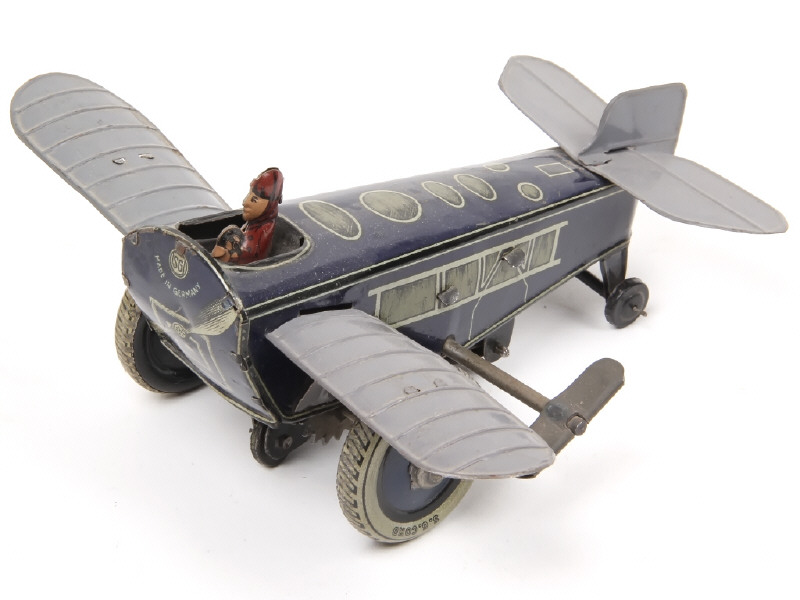 GUNTHERMANN (ALLEMAGNE) Avion monoplan acrobatique en tôle lithographiée bleu marine & gris