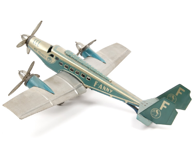 F-ANNY - envergure : 52 cm - moteur à ressort (fonctionne) - quelques parties plus ou moins ternies par endroits - une trace d'oxydation sous l'empennage