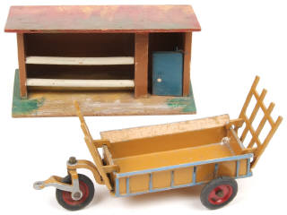QUIRALU (FRANCE) Grande remorque fourragère à 3 roues beige & bleu
