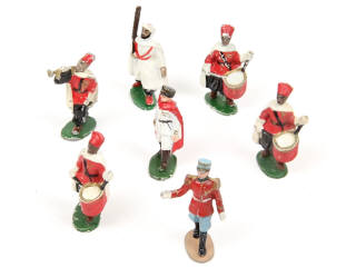 comprend : 3 tambours, un clairon, un sabre & un fusil à l'épaule & un officier (garde noire du sultan) - quelques éclats plus ou moins importants par endroits