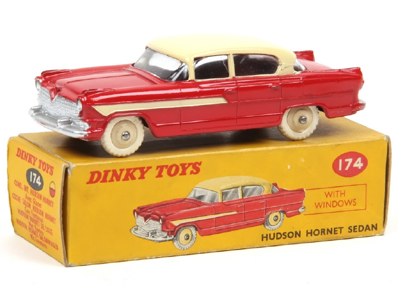 DINKY TOYS (GB) 174 HUDSON HORNET Sedan rouge & crème, jantes crème