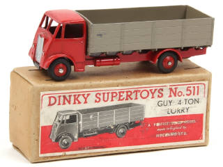 DINKY TOYS (GB) 511 GUY 4 Tonnes plateau à ridelles hautes rouge, benne mastic