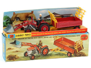 CORGI TOYS (GB) GS9 MASSEY FERGUSON 165 Tracteur agricole avec remorque benne basculante rouge, gris & jaune