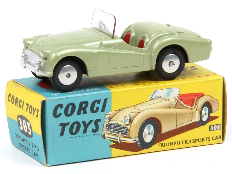 CORGI TOYS (GB) 305 TRIUMPH TR3 vert tilleul métal, sièges tomate