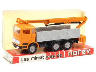NOREV (FRANCE) 199 MERCEDES LP 2223 Plateau à ridelles avec grue de chargement orange & gris