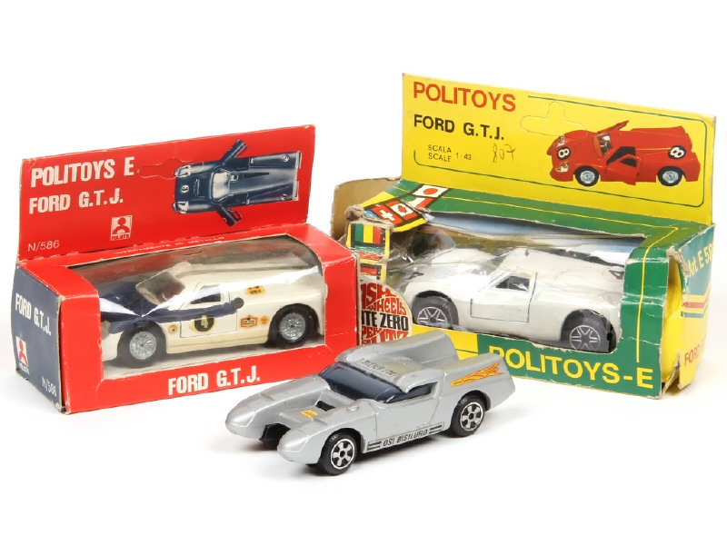 comprend : OSI BUSILURO & FORD GTJ (série 'EXPORT' - 2 exemplaires dont un avec parties repeintes & boîte en état 'e') - chromes plus ou moins ternis - quelques décalques ajoutés