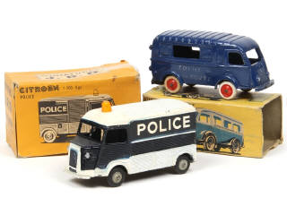 comprend : RENAULT 1000 kg (inscriptions gravées sur la carrosserie & décalques ajoutés - une fixation de porte cassée) & CITROEN 1200 kg (version avec gyrophare orange & calandre noire - quelques traces d'humidité) - on y retrouve les marques : JRD & C.I.J